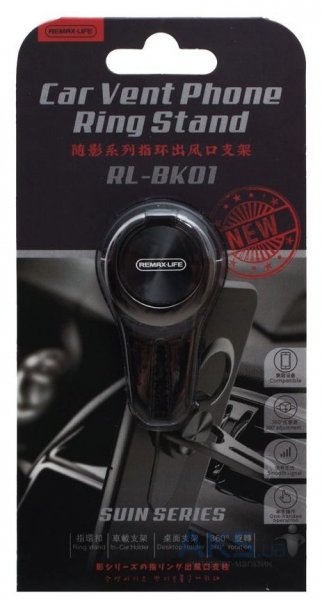 Remax RL-BK01 RING 360° držalo / stojalo / avtonosilec za v zračnik - črn