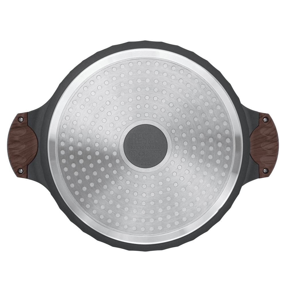 Kuhanje z indukcijskim štedilnikom je zelo koristno. Hitro se segreje, je energetsko učinkovit in varen. Ti štedilniki zahtevajo posebne ponve z magnetnim dnom, kot ga ima tudi serija posod Resto Capella. Dno posode je gladko in ravno, tako da lahko električni tok teče skozi dno posode, prav tako pa je popolnoma združljiva s katero koli drugo kuhinjsko opremo in tako deluje tudi na plinskih, električnih, vitrokeramičnih in halogenskih kuhališčih. Vse to pomeni, da imate zelo prilagodljiv predmet, ki se bo izkazal za učinkovitega tako pri vašem času kot pri računih za energijo.