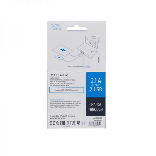 RIVA POWER zunanja baterija powerbank in polnilec VA4736 5000 m/Ah + kabel USB z MicroUSB