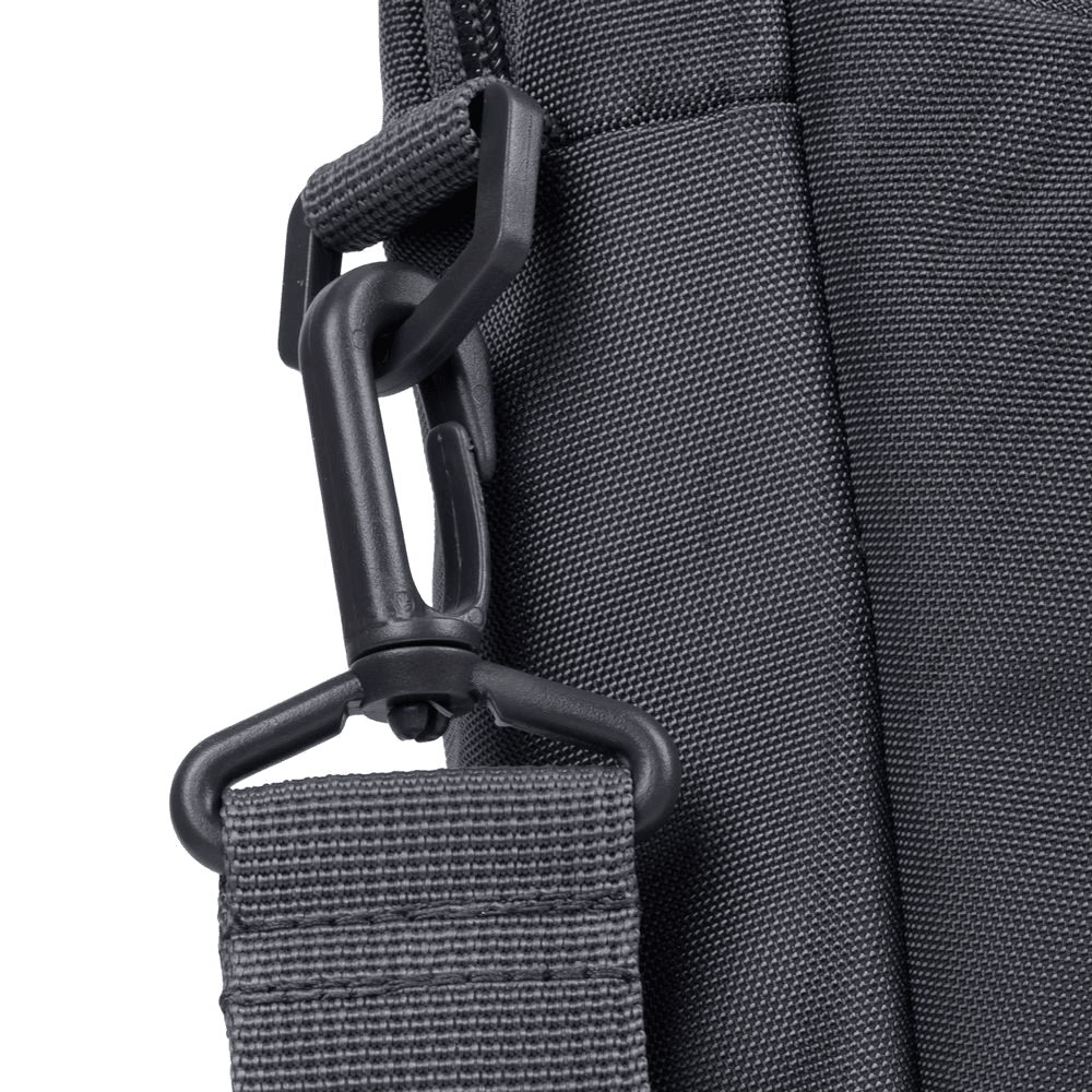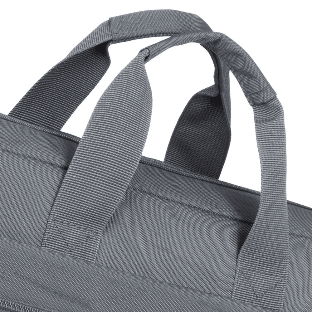 Torba ima dvojne ročaje za prenašanje in dolg, nastavljiv in odstranljiv ramenski trak, kar zagotavlja maksimalno udobje pri nošenju. Obložen material v stranicah torbe pa ščiti vaš prenosnik pred udarci, praskami in drugimi poškodbami.
