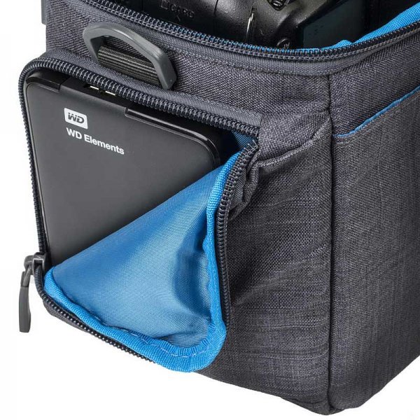 Prostor v torbi (velikost predalov) lahko s pomočjo nastavljivih sten poljubno prilagajate. Dodana sta dva stranska predalčka, ki omogočata shranjevanje drobnarij, poleg tega pa je dostop do njih hiter. Dvojna zadrga omogoča hiter in zanesljiv dostop.