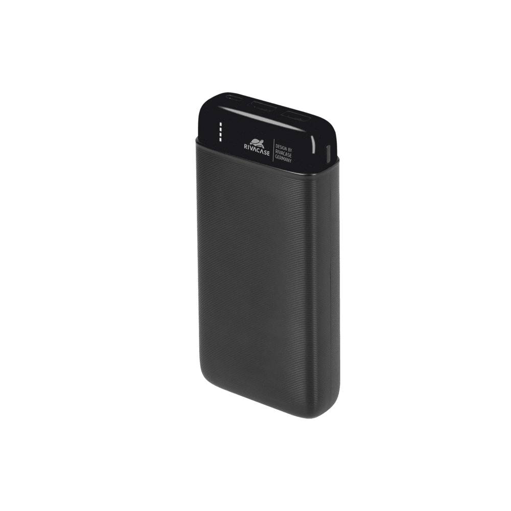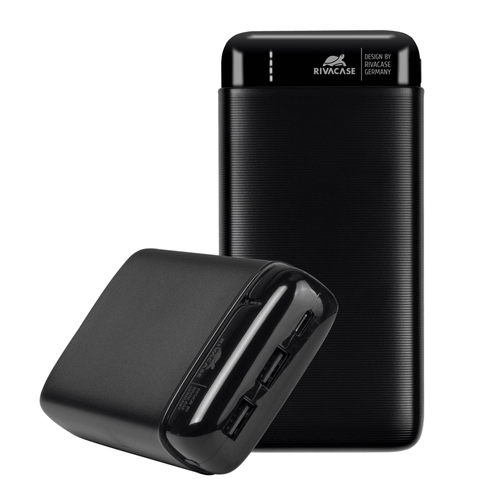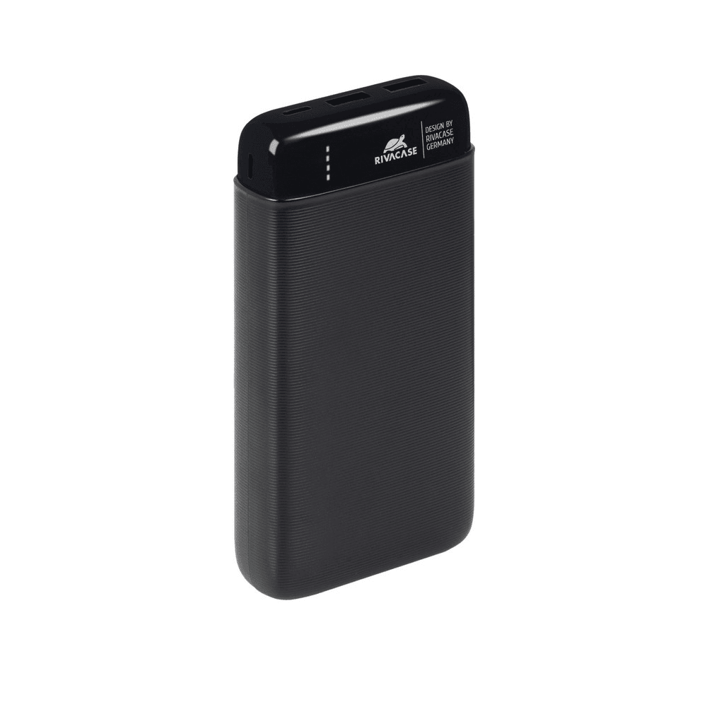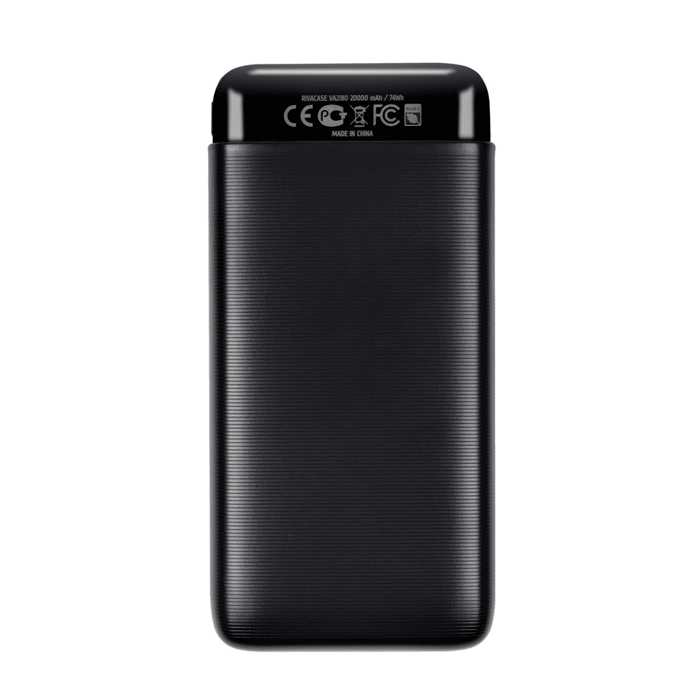 RIVACASE Prenosna baterija VA2180 ("Powerbank") 20.000 mAh 10W, črn z  2x USB-A izhodoma ter LED indikatorjem, ki omogoča simultano polnjenje 3 naprav. Lastnosti izdelka: 20.000 mAh polnilna Litionska baterija z zaščito pred prekomernim polnjenjem, praznjenjem, preobremenitvijo in kratkim stikom.