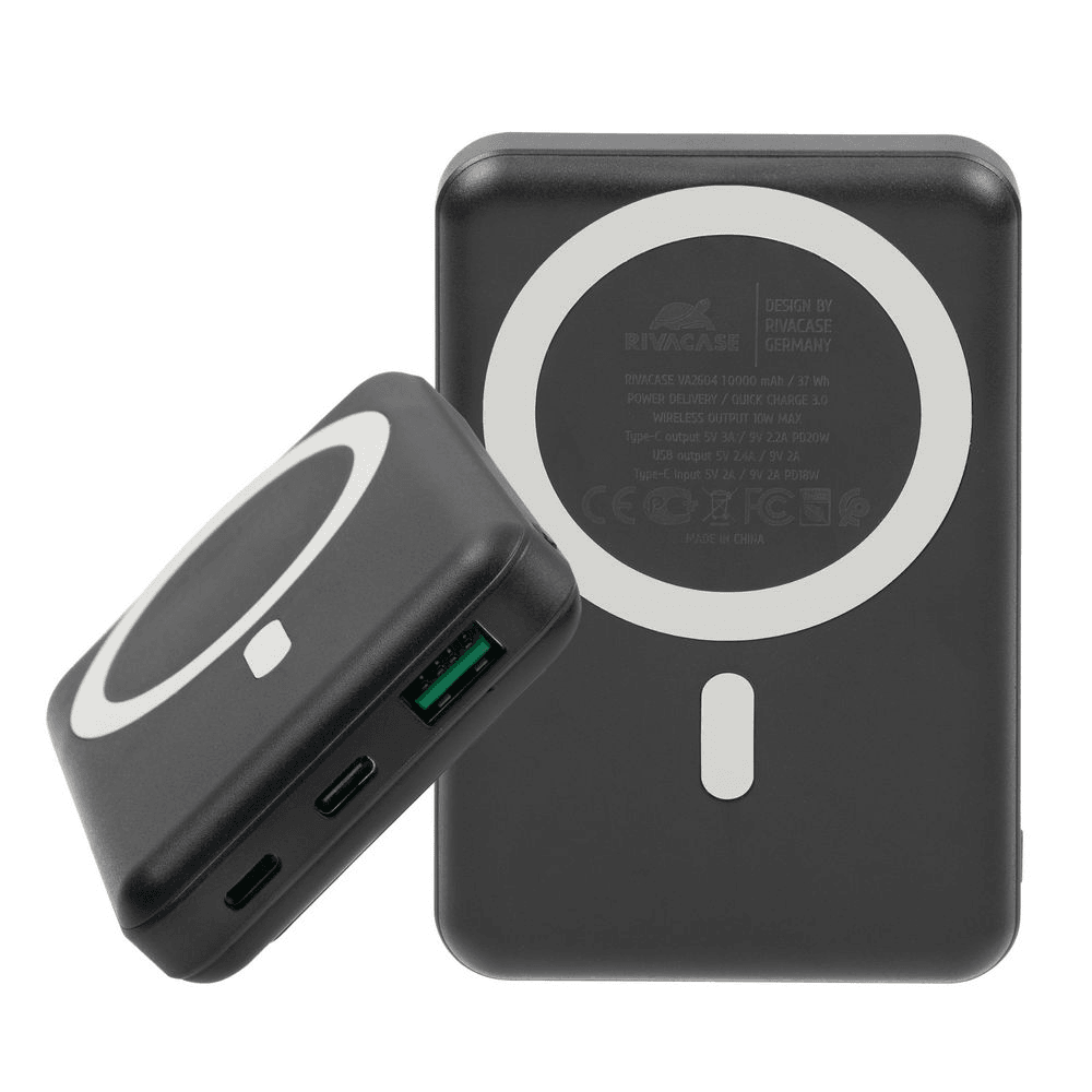 RIVACASE VA2604 Magsafe Qi BREZŽIČNA 15W + QC/PD 20W 10000 mAh prenosna baterija s stojalom