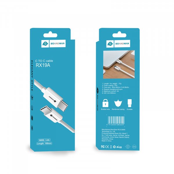 ROANDMAN podatkovni kabel RX19A Super Fast Charge Type C na Type C 3A - bel