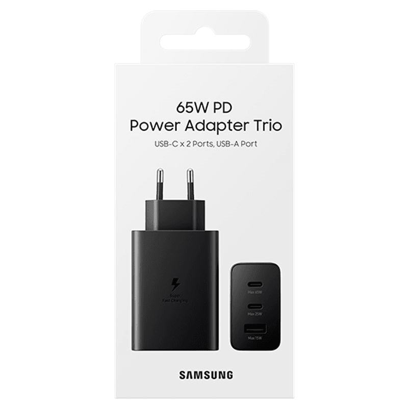 Samsung hišni Power adapter Trio EP-T6530NBE 65W vhod 1x USB A in 2x Type C - Original (EU Blister) črn