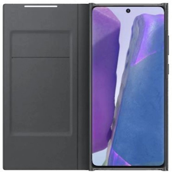 Originalna preklopna torbica SAMSUNG EF-NN980PBE za Galaxy Note 20 v črni barvi nudi odlično zaščito in modern izgled. LED zaslon prikazuje uro, obvestila in klice, kar omogoča enostavno upravljanje brez odpiranja torbice. Kvalitetni materiali zagotavljajo udoben oprijem.