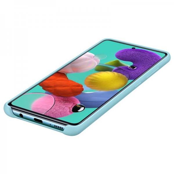 Originalni silikonski ovitek SAMSUNG EF-PA515TBE za GALAXY A51 A515 je gumiran in prijeten na otip, kar zagotavlja odličen oprijem. Tanek in eleganten dizajn omogoča zaščito vašega telefona s stilom, medtem ko ergonomska oblika preprečuje drsenje iz rok.