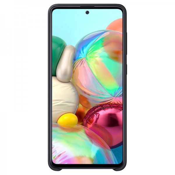 Originalni silikonski ovitek SAMSUNG EF-PA715TBE za GALAXY A71 A715 v črni barvi nudi odlično zaščito in udoben oprijem. Njegova ergonomska oblika preprečuje drsenje iz rok, kar zagotavlja varnost vašega telefona, hkrati pa ohranja eleganten videz.