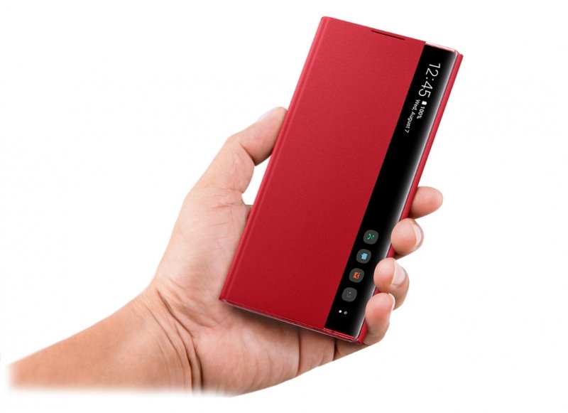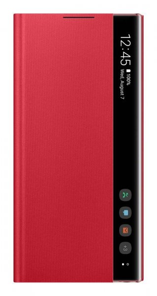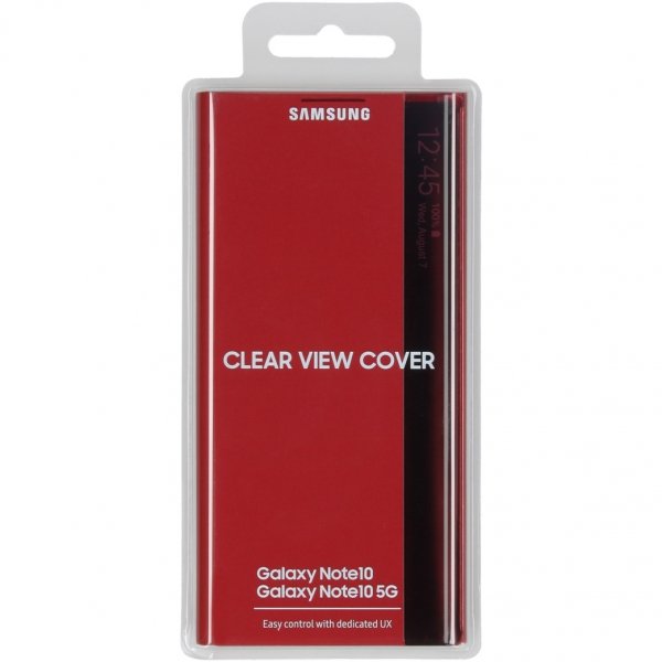 Originalna preklopna torbica Clear View EF-ZN970CRE za SAMSUNG Galaxy Note 10 N970 v rdeči barvi nudi odlično zaščito vašega telefona, hkrati pa omogoča enostaven dostop do vseh funkcij brez odpiranja. Kvalitetna izdelava zagotavlja dolgotrajno zaščito in eleganten videz.