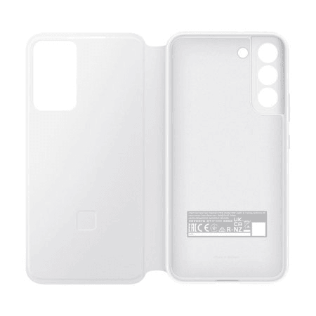 Originalna preklopna torbica Clear View EF-ZS901CWE za Samsung Galaxy S22 5G v beli barvi natančno ščiti vaš telefon. Omogoča enostavno uporabo funkcij, kot so sprejemanje klicev in obvestil, brez odpiranja torbice. Kvalitetna izdelava zagotavlja dolgo življenjsko dobo in zaščito.