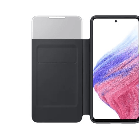 Samsung S-View torbica EF-EA536PBE za Galaxy A53 v črni barvi ponuja odlično zaščito in tanek dizajn. Originalna knjigica ohranja pristno obliko telefona ter omogoča enostavno upravljanje prek posebnega okna, kar omogoča sprejemanje klicev brez odpiranja torbice.