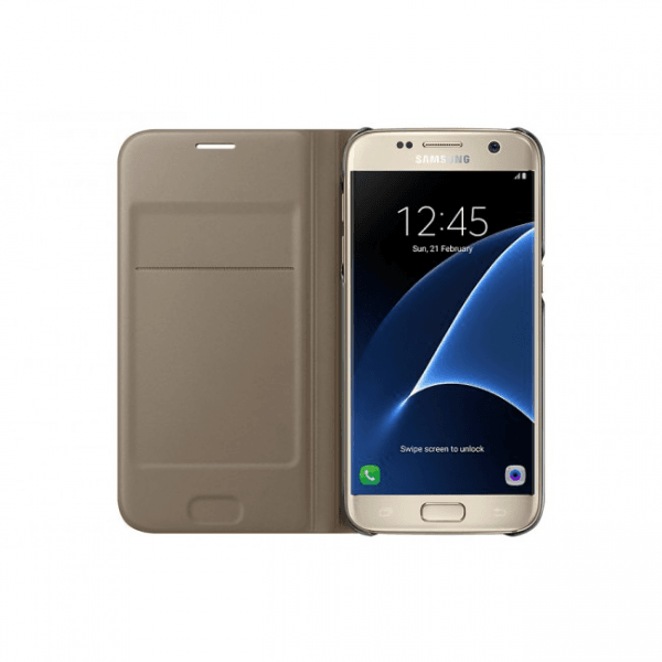 Originalna preklopna torbica SAMSUNG EF-WG930PBE v zlati barvi natančno ščiti vaš Galaxy S7 G930. Kvalitetna izdelava zagotavlja odlično zaščito in trajnost, kar vašemu telefonu daje edinstven videz in vrednost.