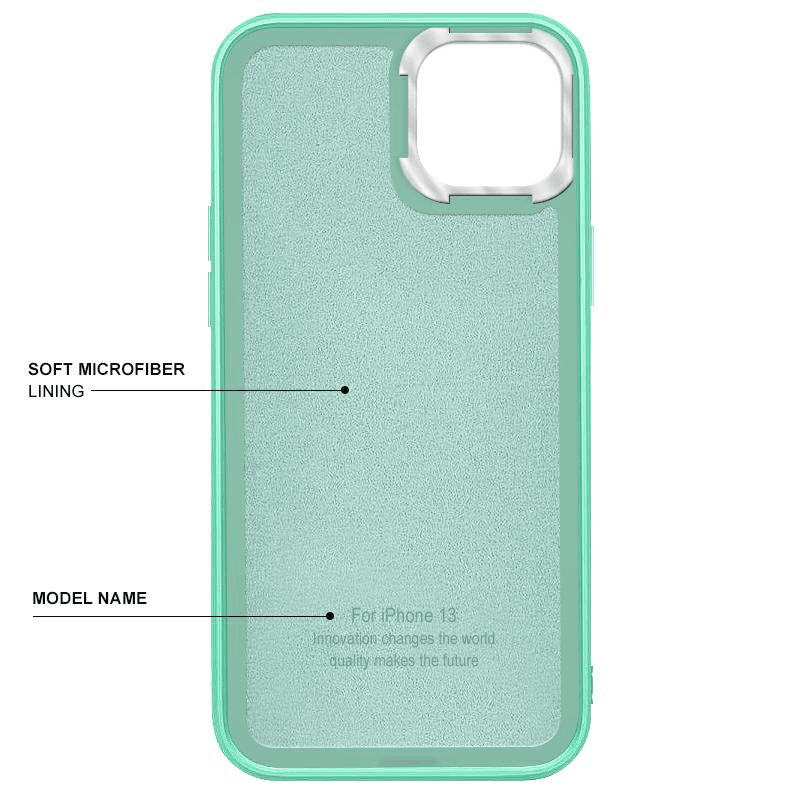 Ovitek je mint barve, je tanek in eleganten. Izbočena obroba pri kameri je svetleča in izbočena, zato odlično zaščiti kamero. Ovitek pa odlično zaščiti vaš telefon pred praskami.