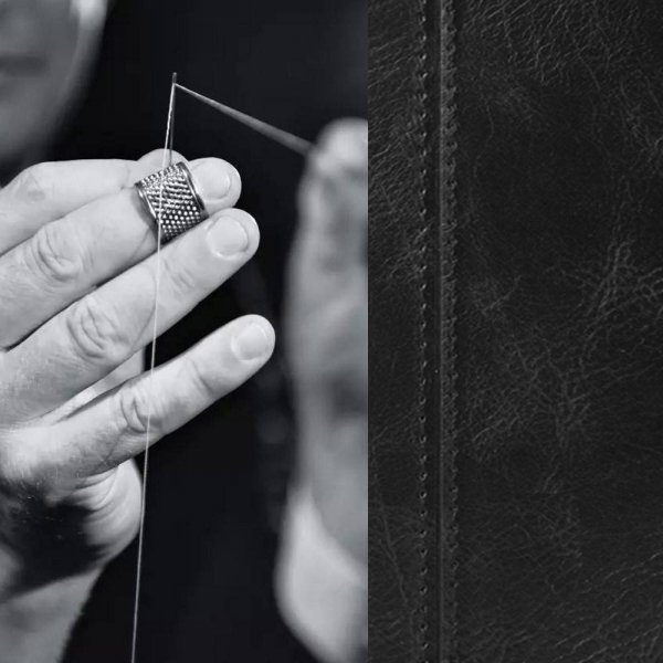 Izgled ovitka je kot usnje. Narjen je namreč iz PU usnja