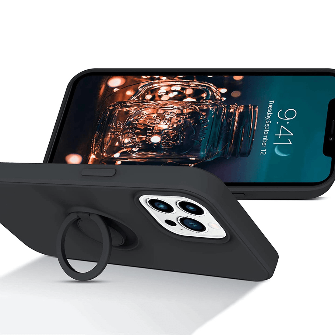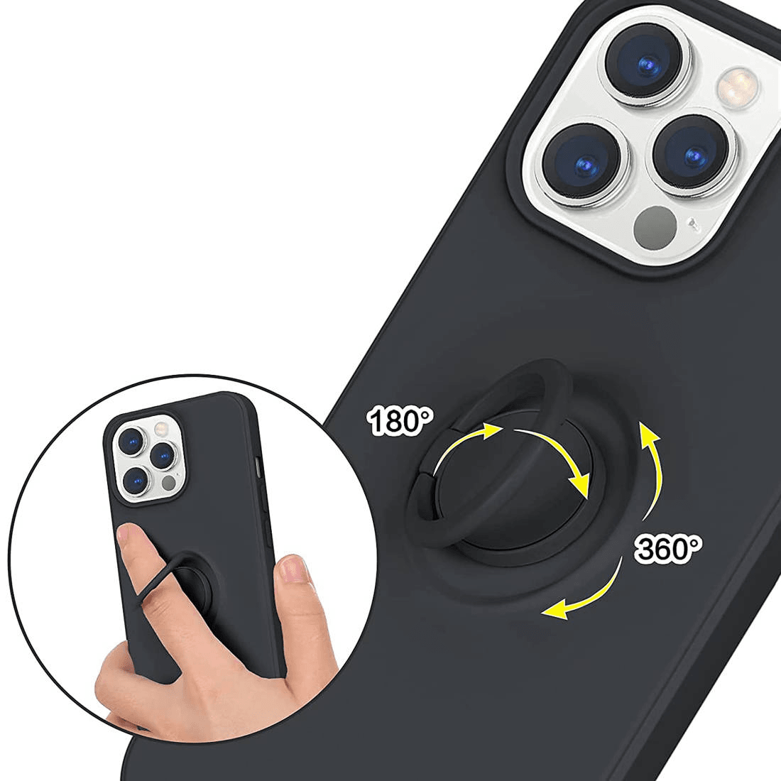 Silikonski ovitek Liquid Ring z zaščito kamere za iPhone 13 Pro Max - črn