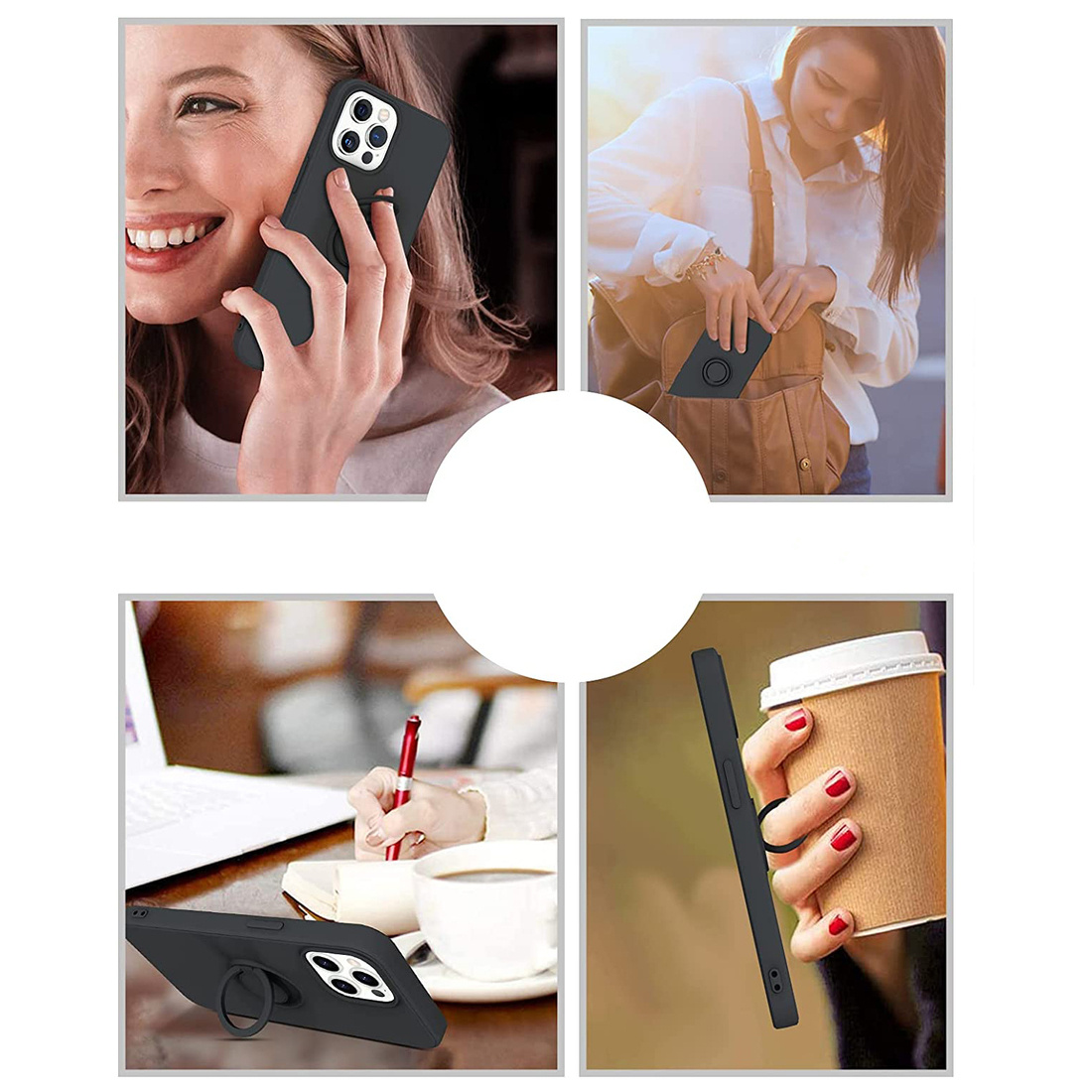 Silikonski ovitek je izrdeno robusten in bo vaš telefon odlično varoval pred udarci. Ovitek je poseben tudi zato, ker poleg tega, da nudi odličen oprijem na roki ima tudi snemljiv obroček. Obroček je lahko pripomoček pri držanju ali pa priročno držalo, stojalo za telefon, lahko pa se ga uporablja tudi na magnetnem stojalu (ni priložen) v avtu.