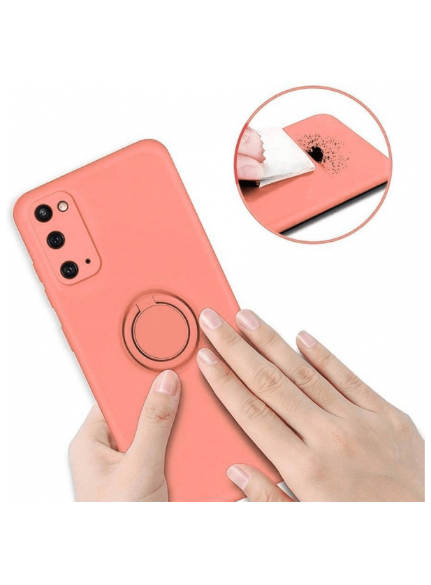 Silikonski ovitek je izrdeno robusten in bo vaš telefon odlično varoval pred udarci. Ovitek je poseben tudi zato, ker poleg tega, da nudi odličen oprijem na roki ima tudi snemljiv obroček. Obroček je lahko pripomoček pri držanju ali pa priročno držalo, stojalo za telefon, lahko pa se ga uporablja tudi na magnetnem stojalu (ni priložen) v avtu.