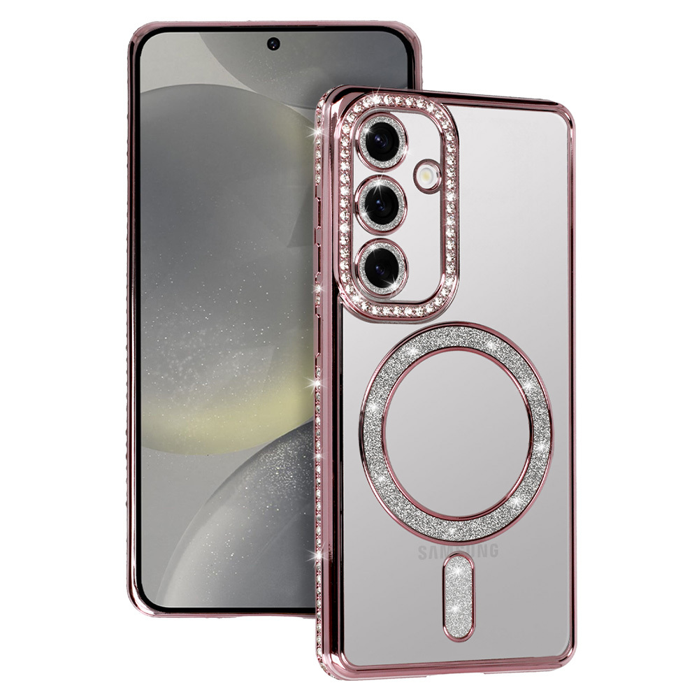 Silikonski ovitek MagSafe za Samsung Galaxy S25 Plus 5G - prozorno roza z bleščicami