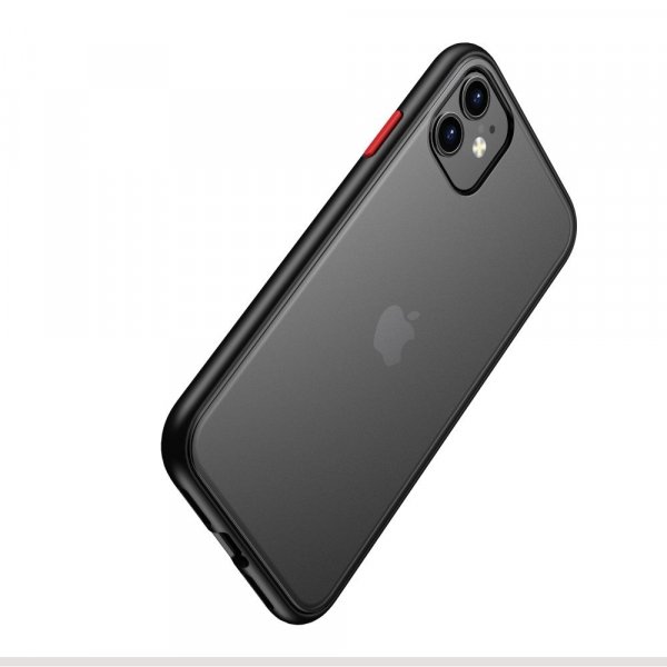 Silikonski ovitek s trdim zadnjim delom za iPhone 12 Mini v črni barvi natančno ščiti vaš telefon. Ima izbočene tipke za enostavno uporabo in prozorno temno zadnjo stran. Ovitek se popolnoma prilega telefonu ter omogoča dostop do vseh odprtin in gumbov.