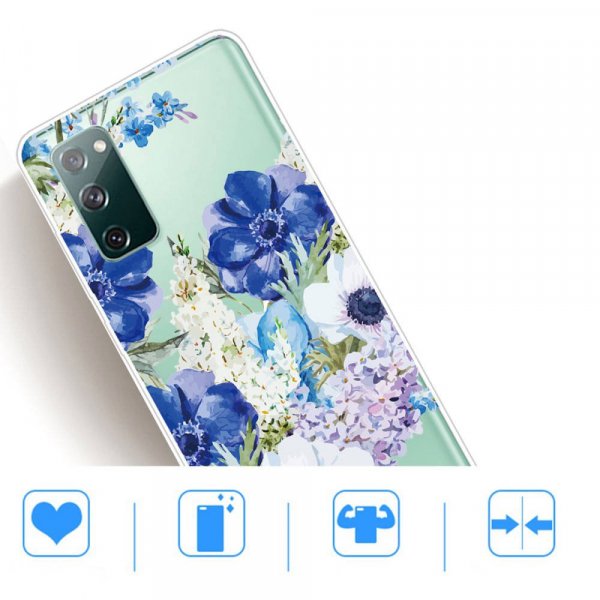 Silikonski ovitek vijola za Samsung Galaxy S20 FE G870 je prozoren in se popolnoma prilega vašemu telefonu. Ovitka je okrašen s cvetlicami, kar vašemu telefonu doda edinstven videz, hkrati pa omogoča enostaven dostop do vseh odprtin in gumbov.