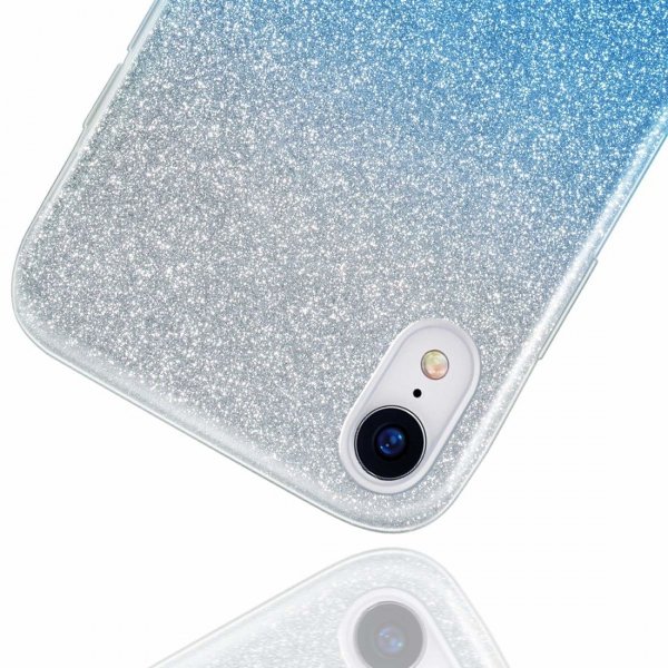 Silikonski ovitek z bleščicami Bling za Huawei P30 srebrn z modrimi bleščicami