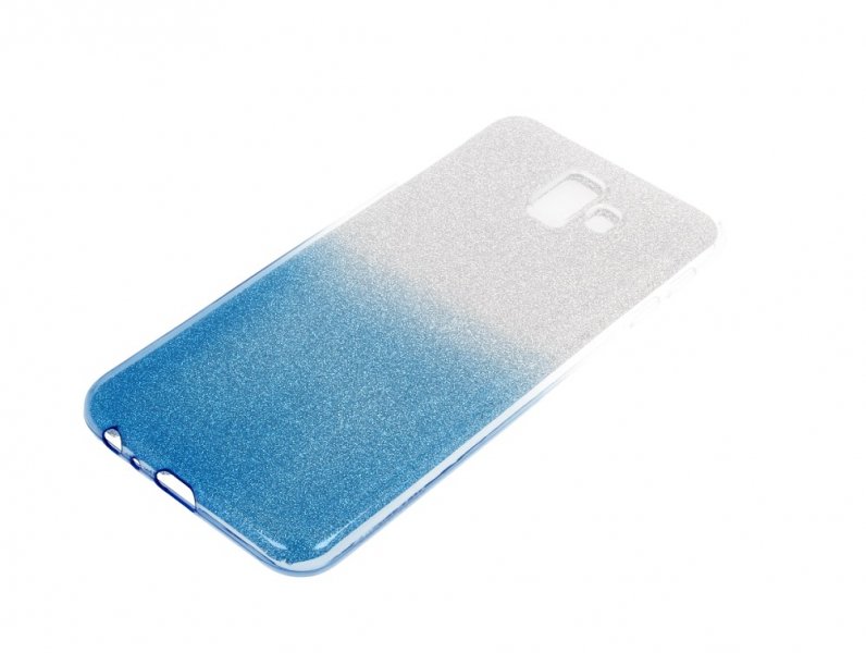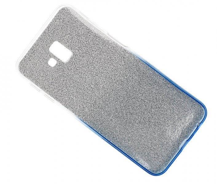 Silikonski ovitek z bleščicami Bling za Samsung Galaxy J6 Plus 2018 J610 srebrn z modrimi bleščicami