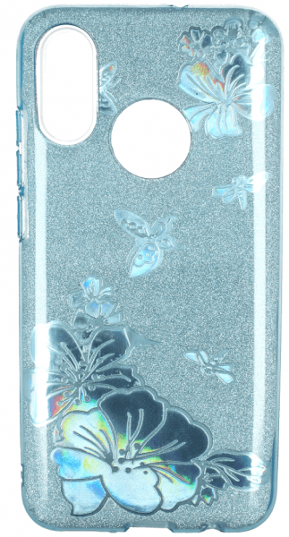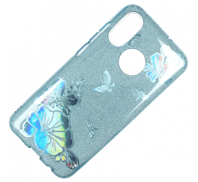 Silikonski ovitek z metuljčki za Huawei P Smart 2019 moder z bleščicami