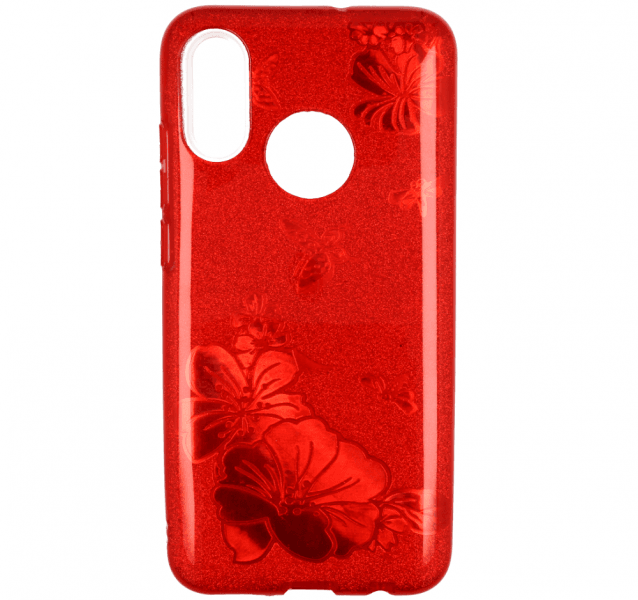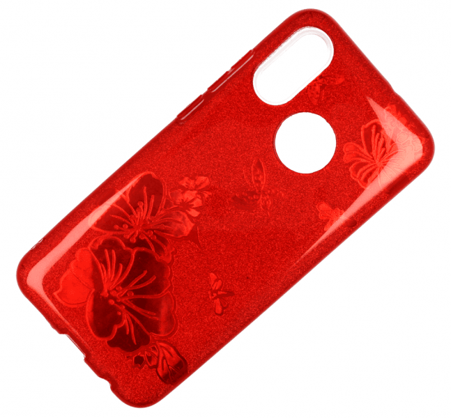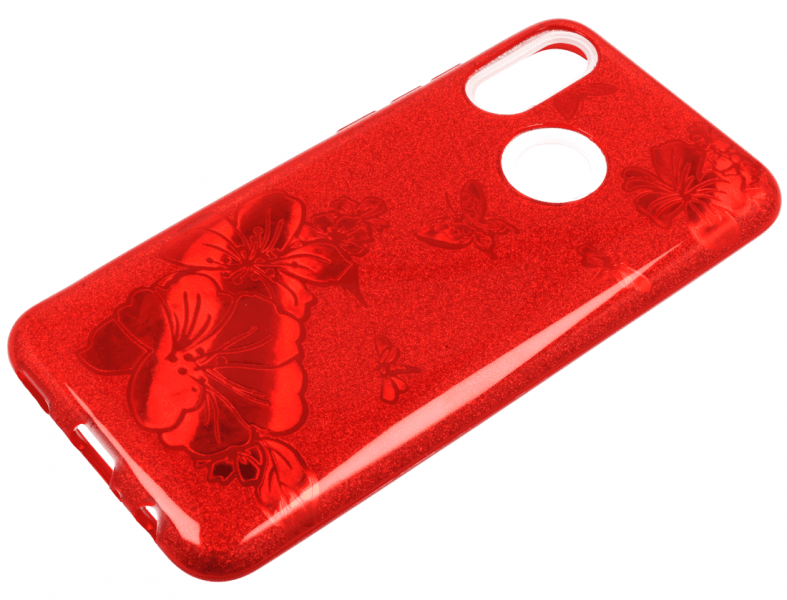 Silikonski ovitek z metuljčki za Huawei P Smart 2019 rdeč z bleščicami
