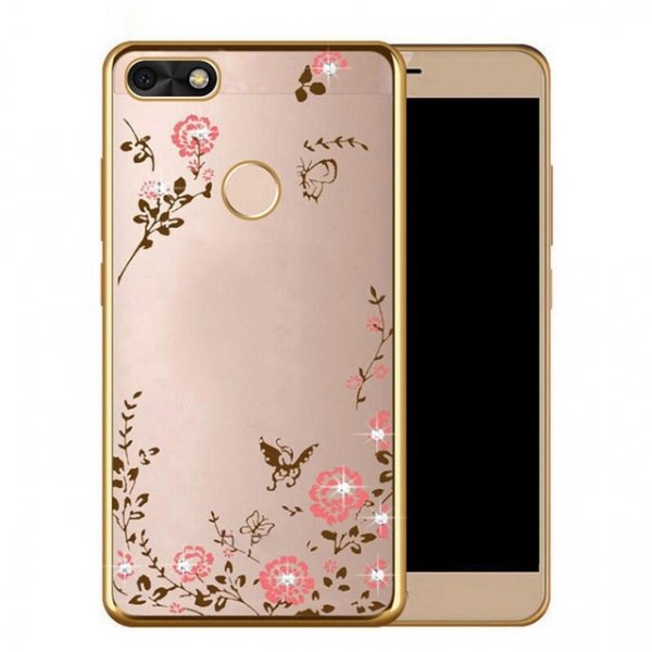 Silikonski ovitek z rožicami za Huawei P Smart 2019 / Honor 10 Lite - zlat