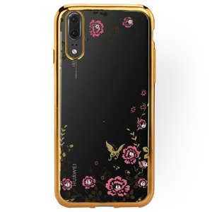 Silikonski ovitek z rožicami za Huawei P20 Lite - zlat