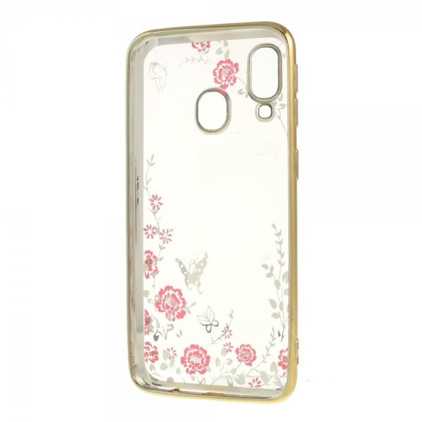 Silikonski ovitek z rožicami za Huawei P30 Lite - zlat