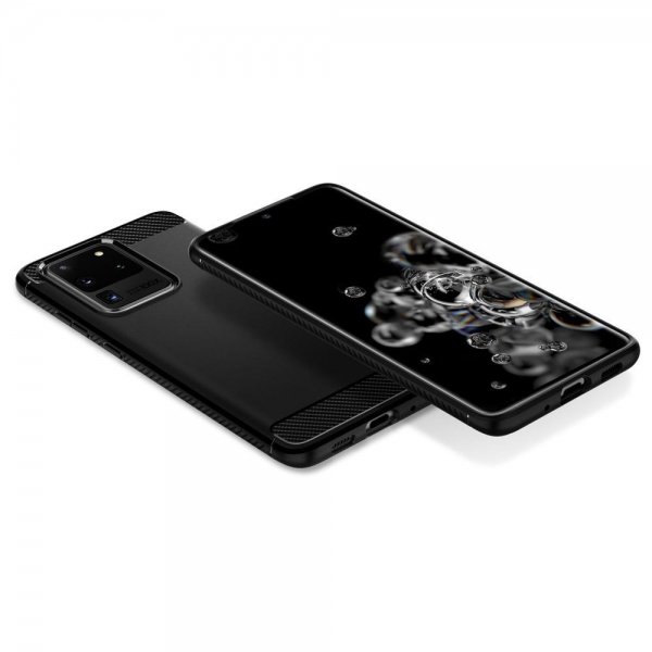 Spigen Rugged Armor silikonski ovitek za Samsung Galaxy S20 Ultra G988 ponuja odlično zaščito s sodobnim in brezčasnim dizajnom, navdihnjenim z avtoindustrijo. Zunanjost ovitka vsebuje detajle karbonskih vlaken, kar zagotavlja edinstven videz in dodatno vzdržljivost.