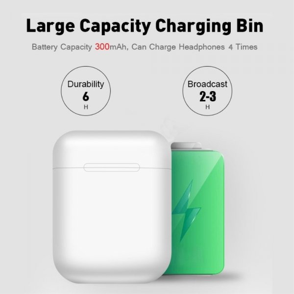 Uporabljate lahko eno ali obe slušalki, druga slušalka se avtomatično poveže s prvo. Zraven slušalk dobite priročen powerbank, v katerega lahko varno pospravite slušalki in jih ob enem še napolnete.
