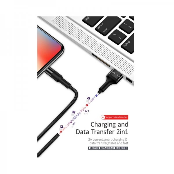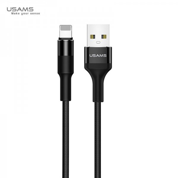 USAMS podatkovni kabel SJ220 Lightning 2A dožina 1,2 m - pleten najlon črn