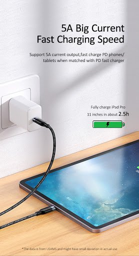 Usams podatkovni kabel, za vse telefone, ki podpirajo Type C kabel. Dolžina kabla je 1,2 m. Podpira zelo napredno in močno polnjenje 100W izhodne moči, kar pomeni da lahko z njim napolnete tudi naprave ki potrebujejo veliko moč polnjenja, kot so MacBook Pro, Xiaomi Notebook,...