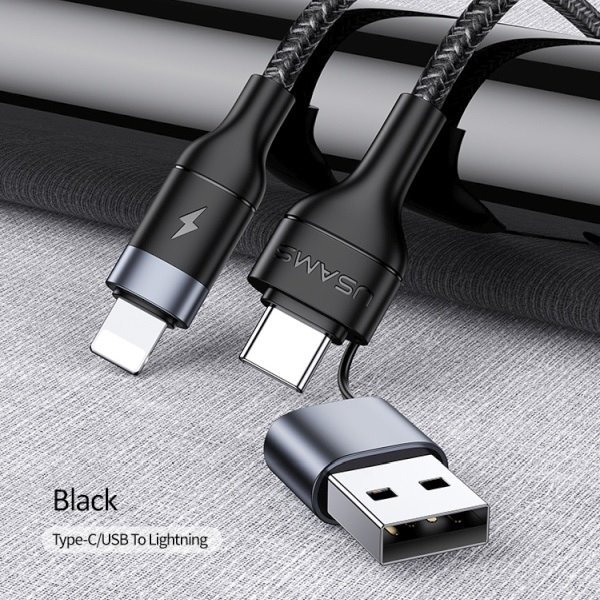 USAMS podatkovni kabel SJ404 Lightning na USB A ali Type C 2A dožina 1,2 m Quick Charge - črn